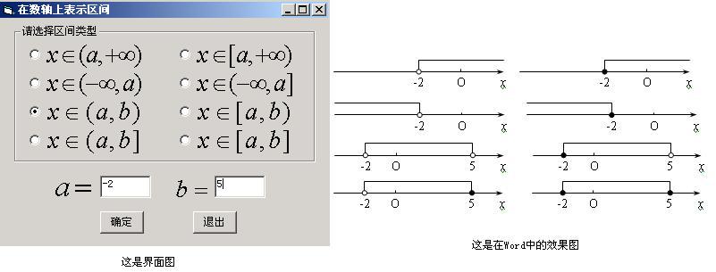 今天是女儿满九个月的日子,今天想了一天,终于解决了解一元一次方程、不等式;一元二次方程和不等式的算法问题。作为过渡,先把不等式解集的各种形式用区间表示,并在数轴上画了其示意图。下面是界面截图:(最新版本号:4.0.0)